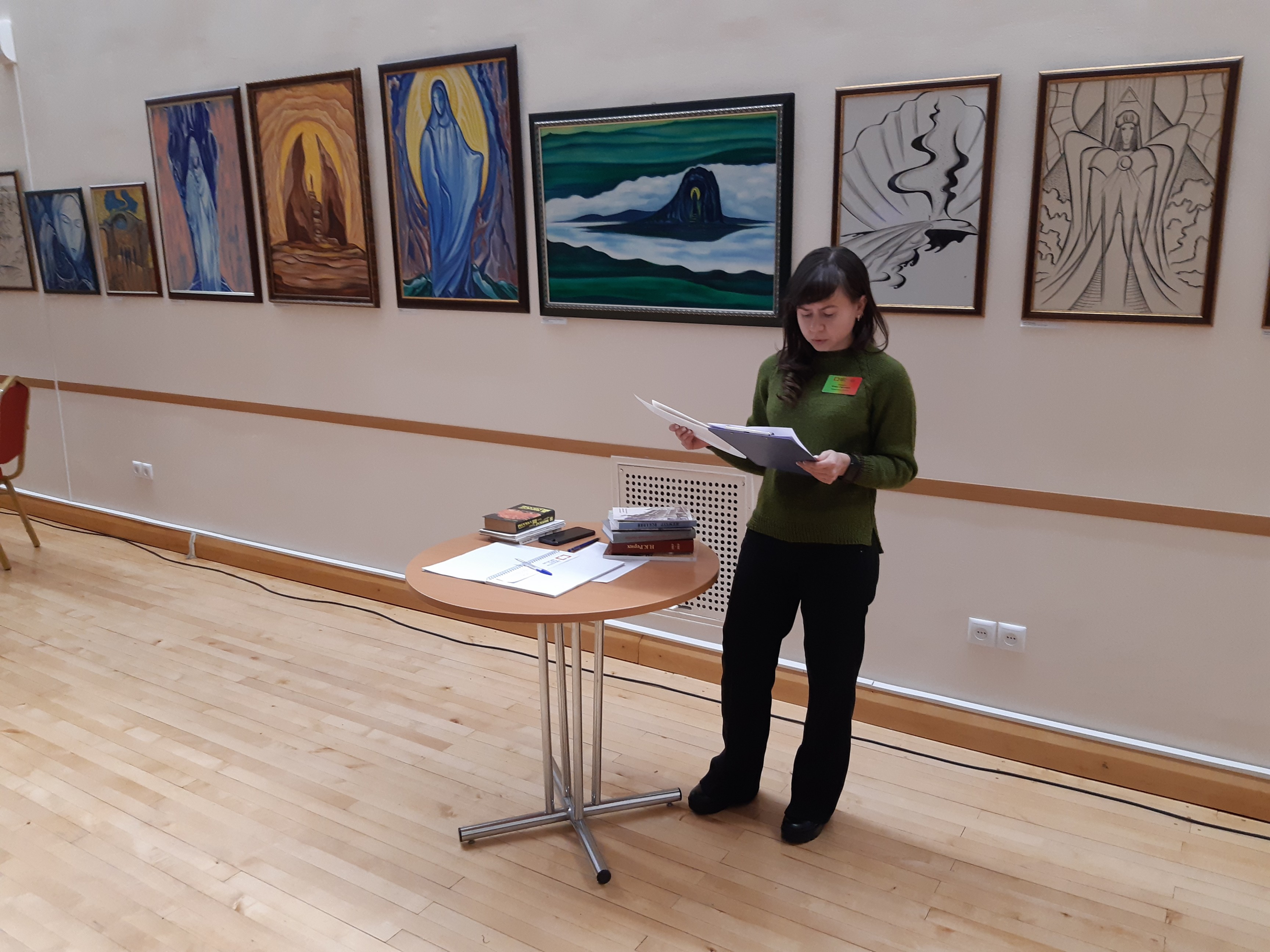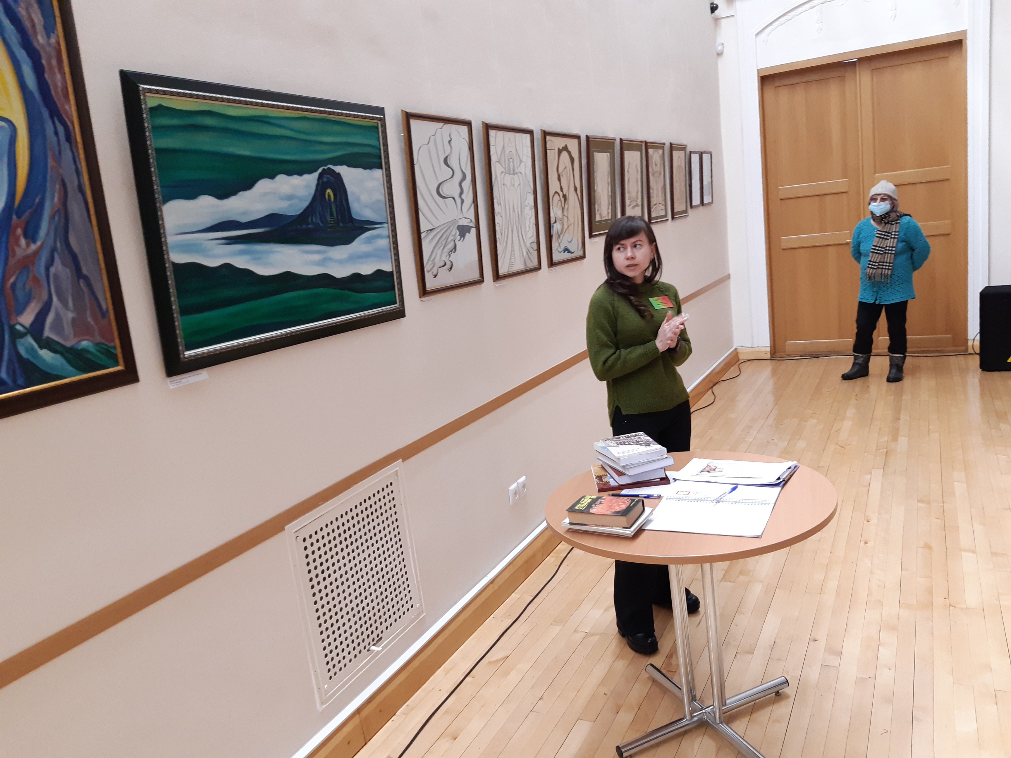 На открытии мы немного поговорили о художнике и о выставке, также слушателям были представлены издания из книжного фонда Приладожского центра Н. Рериха, автором которых является Андрей Петрович.
