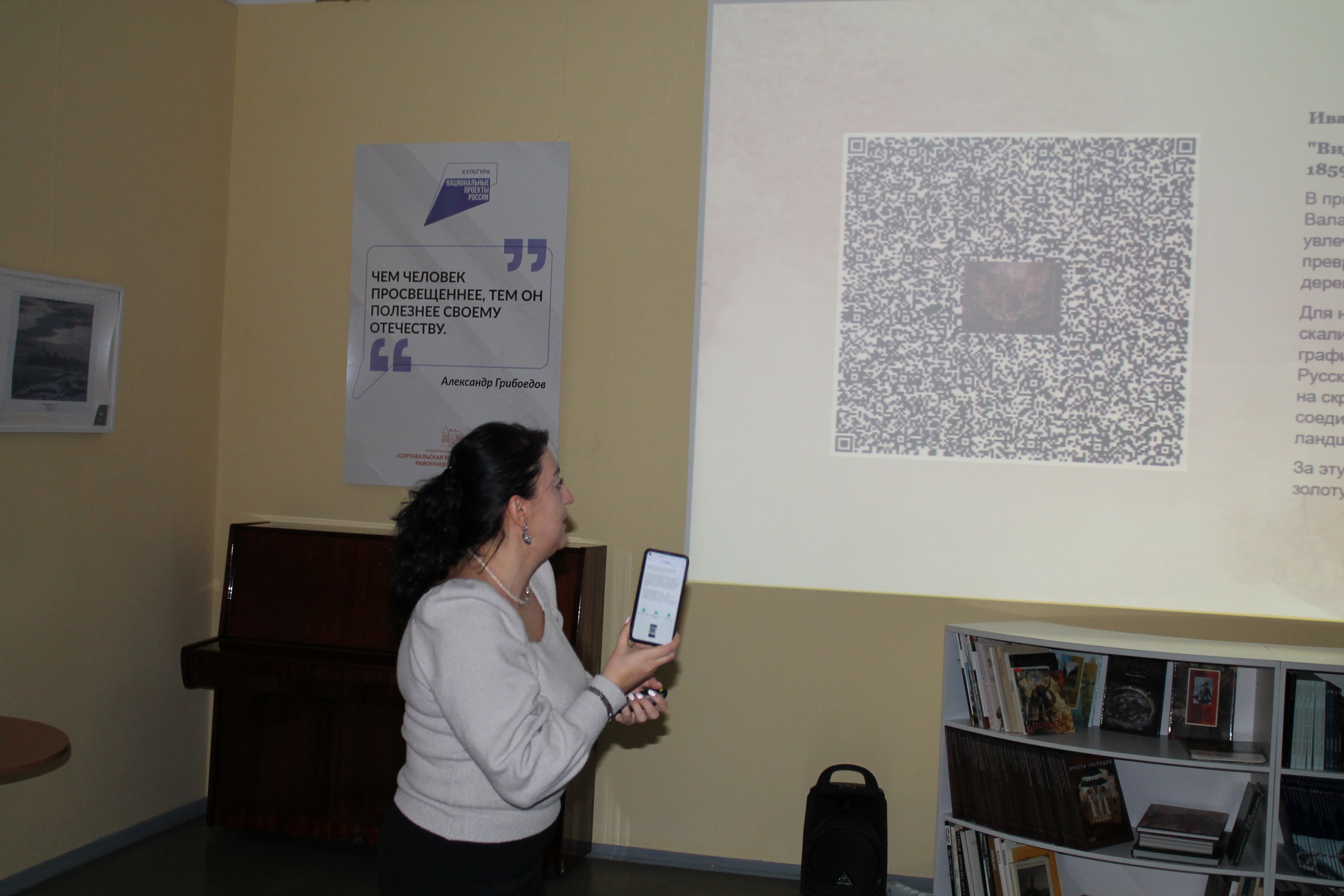 Каждая репродукция экспозиции снабжена QR-кодом, ведущим на страницу с подробной информацией о художнике и его картине.