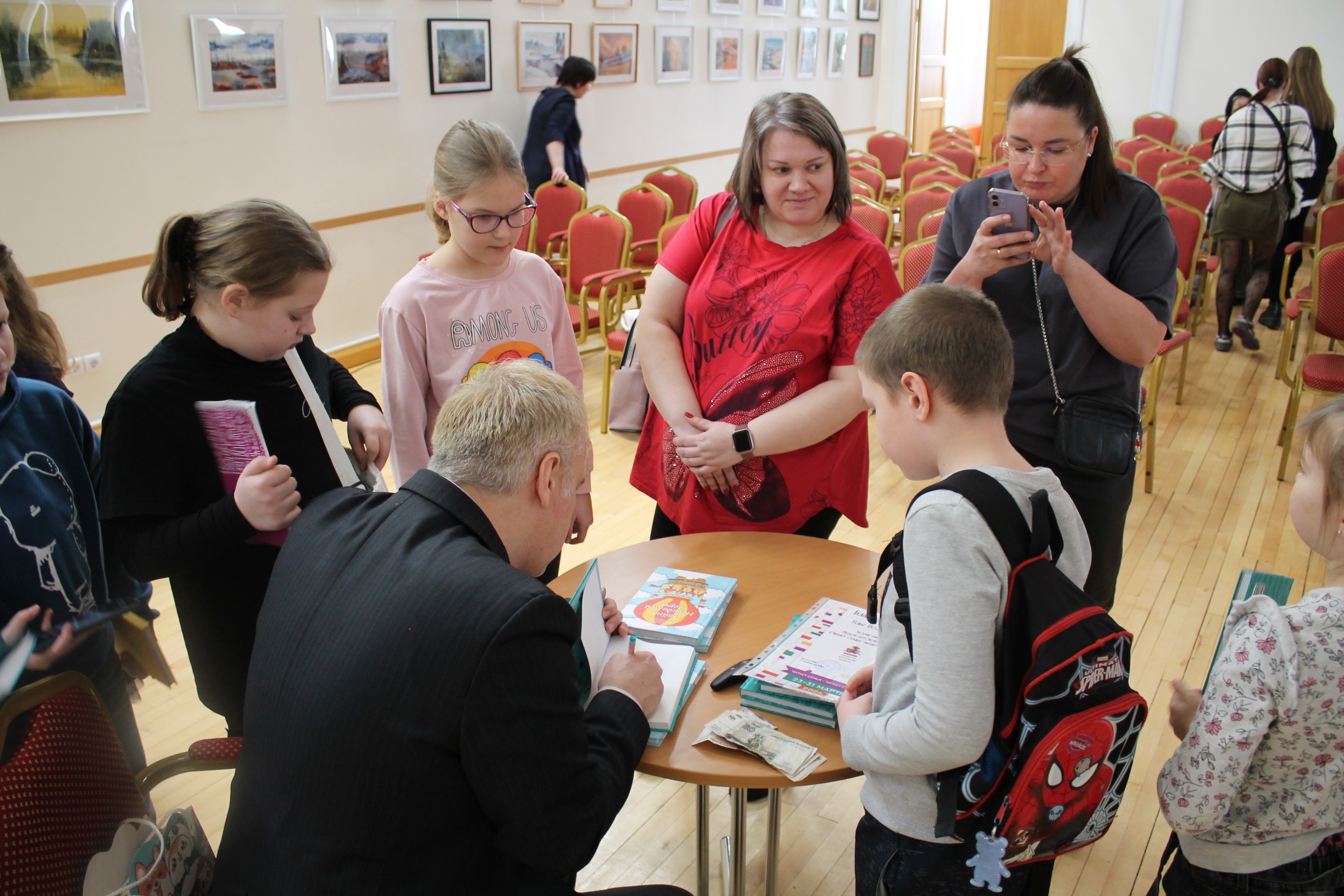На этот раз он провел для своих читателей интересную игру-викторину. Каждый её этап включал в себя два вопроса, один из которых был посвящён творчеству писателя, а другой - книгам-юбилярам 2024 года. Победителям были вручены ценные призы: произведения любимых авторов детства писателя, а также - книги из цикла «Приключения в Белколесье», принадлежащие его перу.