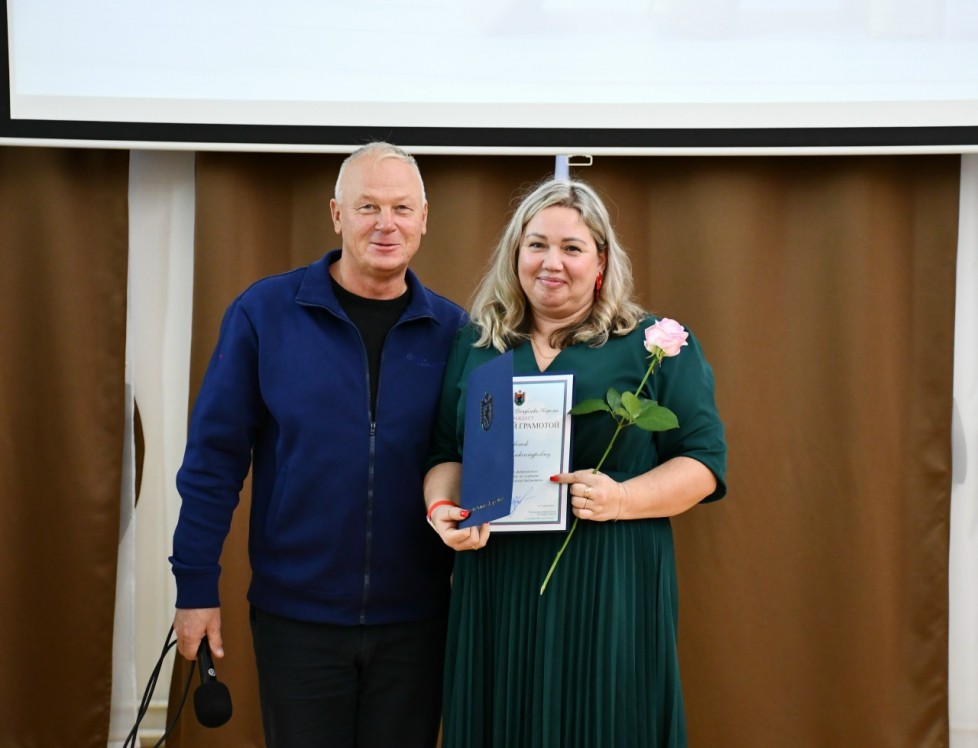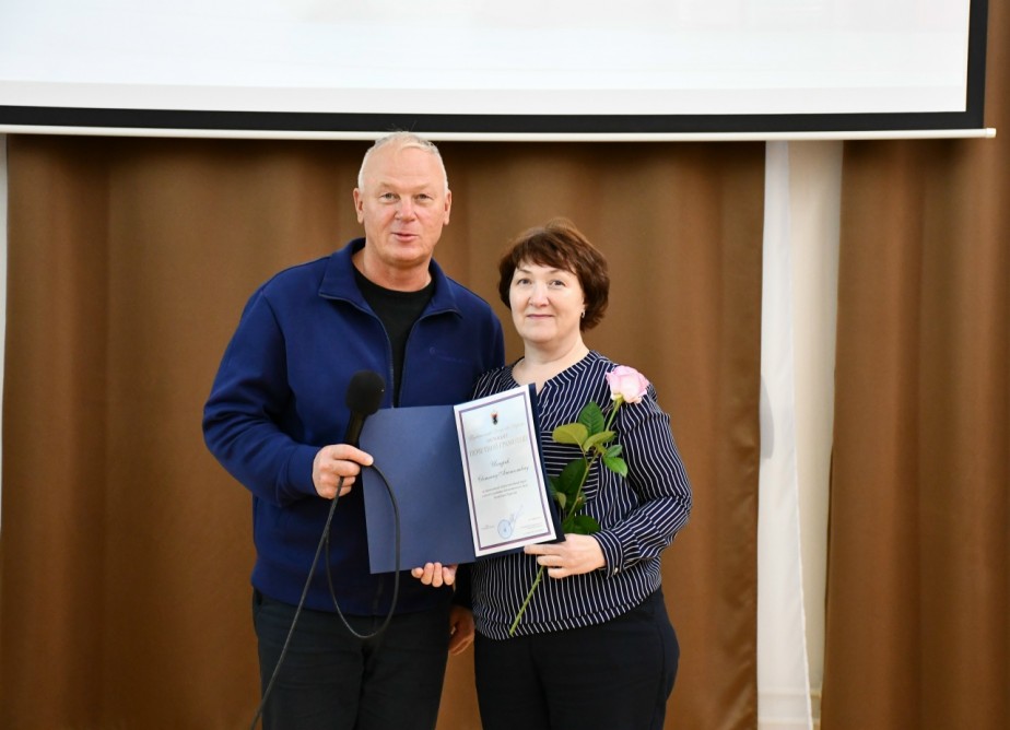 Глава Сортавальского муниципального округа Сергей Владимирович Крупин тепло поздравил коллектив библиотеки с юбилеем и вручил почётные грамоты Правительства Республики Карелия ее сотрудникам: Чежиной Марине Владимировне, Шендрик Светлане Анатольевне и Савенок Анне Александровне.