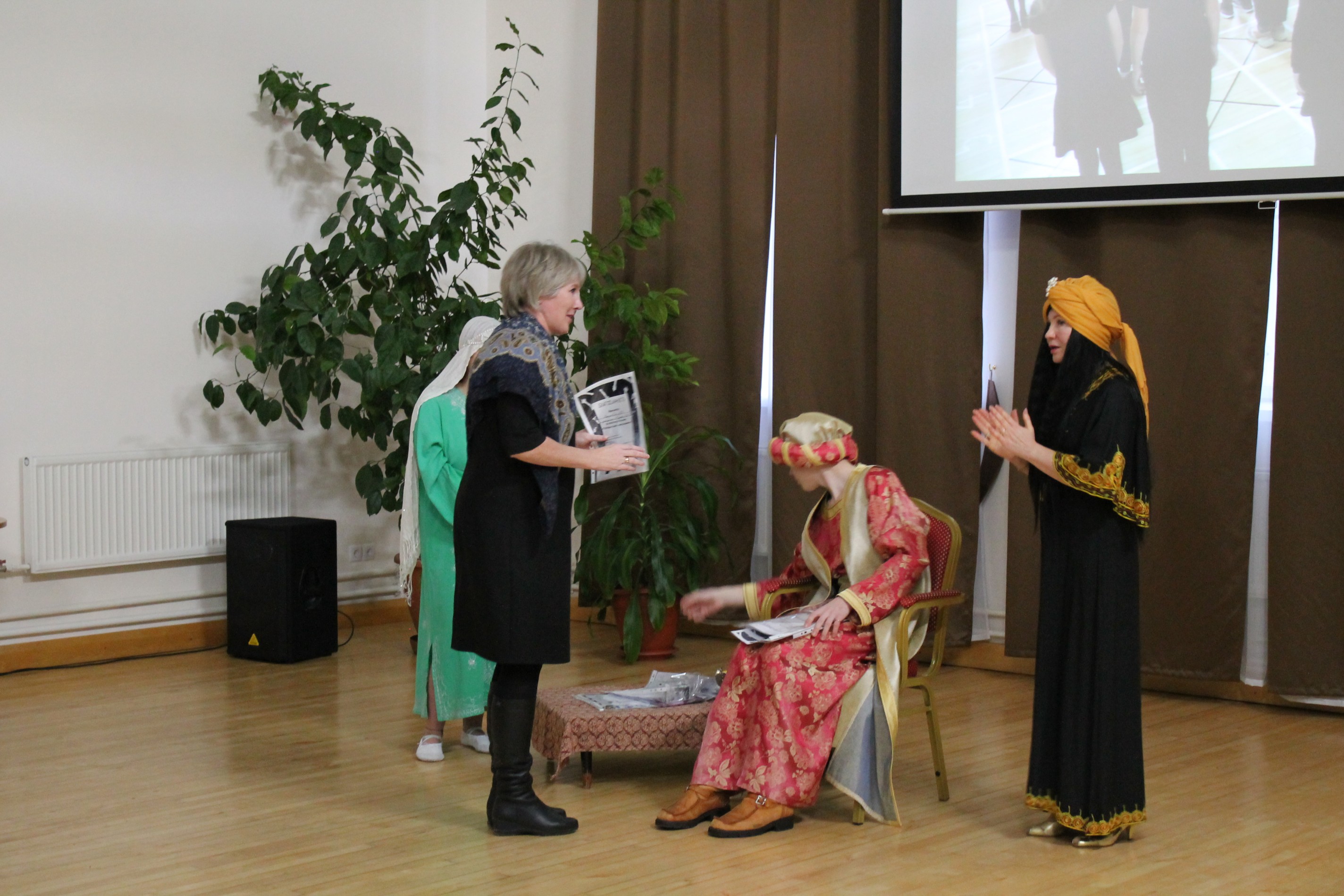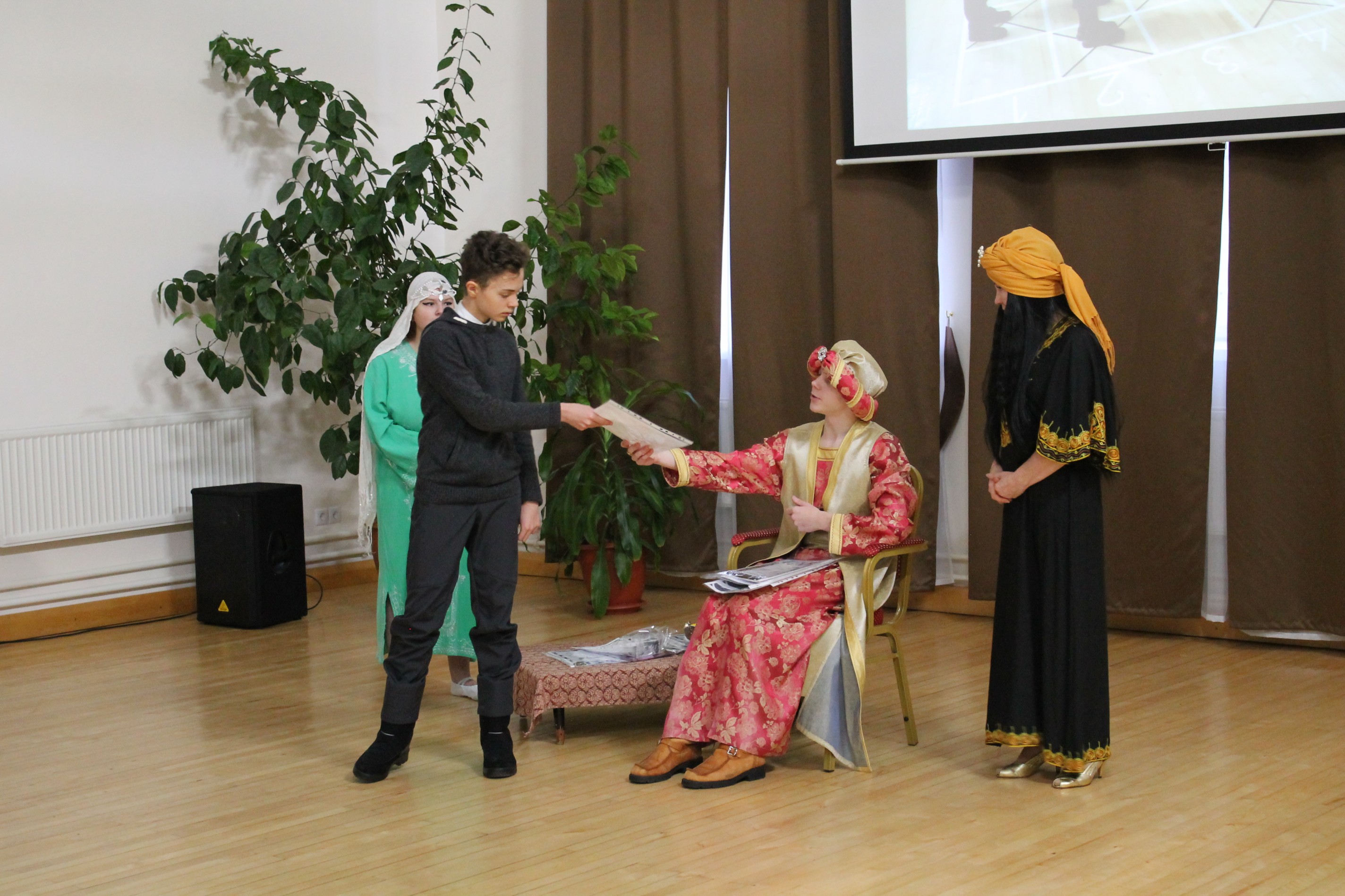 Мудрый шах выслушал доклады своих советников о том, как прошел проект и вручил грамоты и памятные призы всем его участникам. Восточный колорит праздника подчеркнули танцевальные номера студии танца «Салтанат» (руководитель Графова Светлана Александровна).