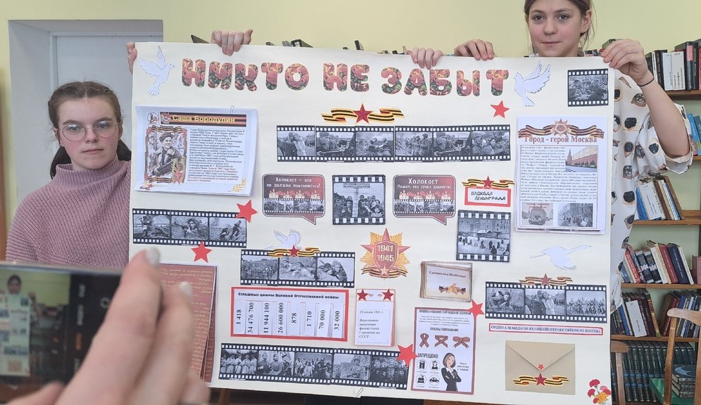 18 марта в Хаапалампинской сельской библиотеке ученики шестого класса школы поселка Хаапалампи создали интерактивную стенгазету, посвященную 80-летию Победы в Великой Отечественной войне.
