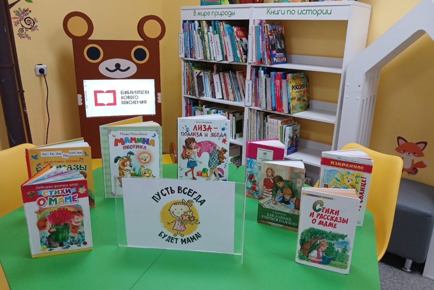 20 ноября в Хелюльской модельной библиотеке для воспитанников подготовительной группы детского сада прошла познавательная беседа у книжной выставки «Пусть всегда будет мама»