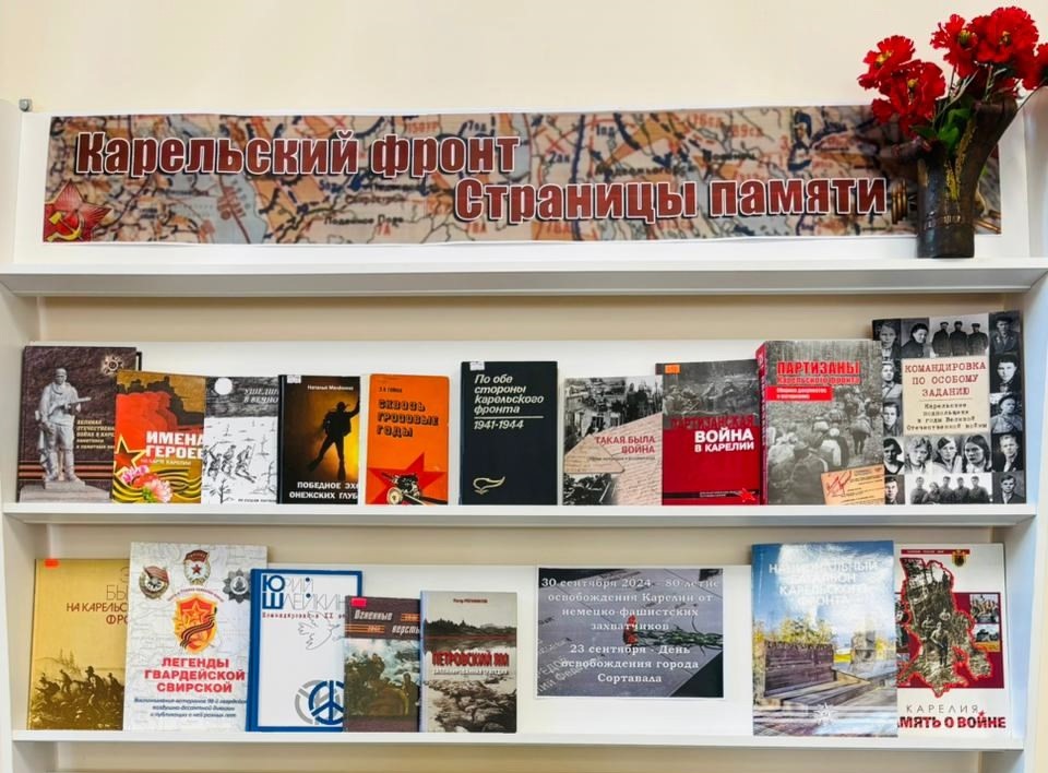 С 20 сентября по 7 октября в Сортавальской районной библиотеке проходит книжная выставка «Карельский фронт. Страницы памяти», посвященная 80-летию со дня освобождения республики и города Сортавала.