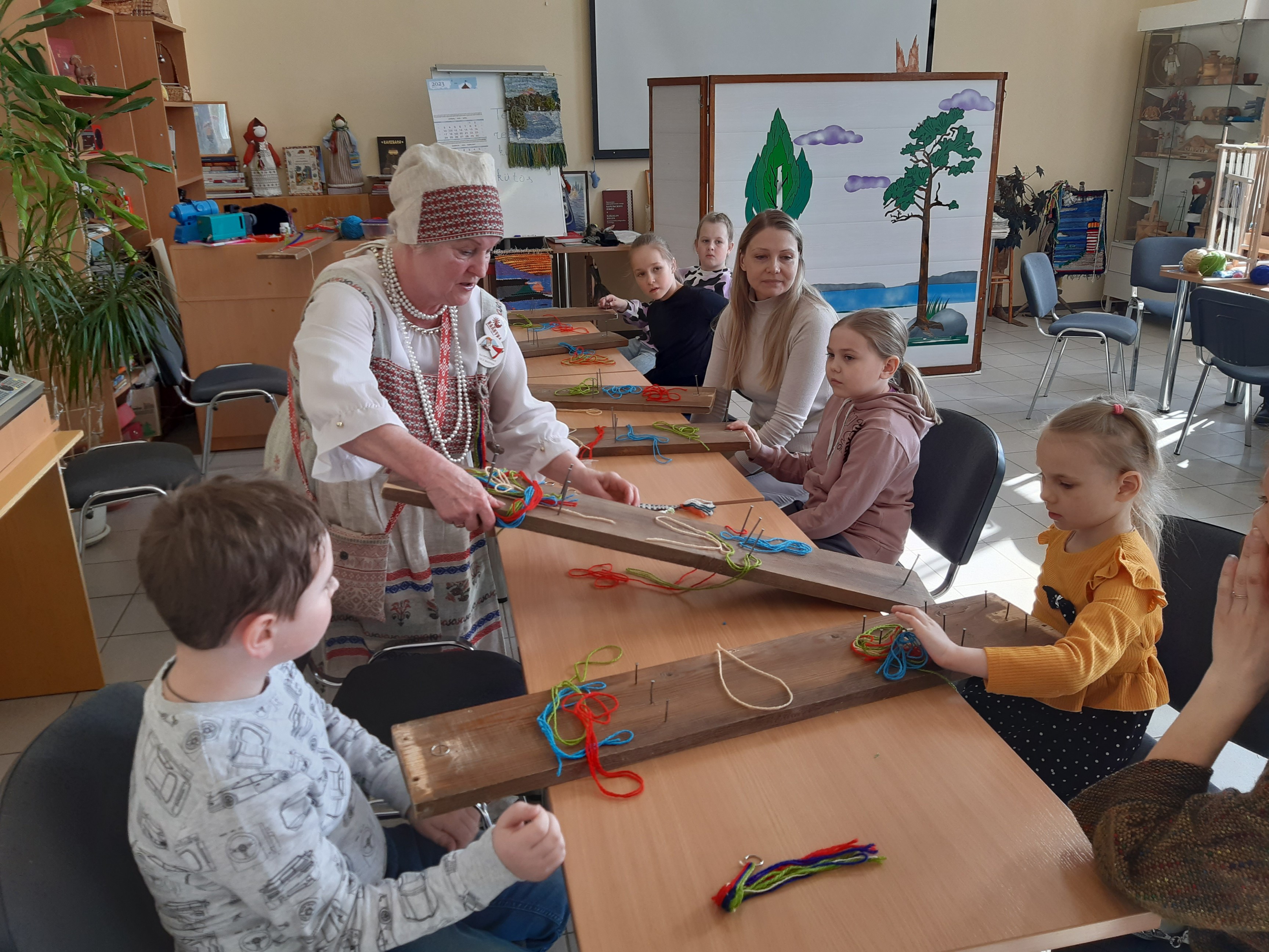 31 марта 2023 года в этнокультурном зале «Karjalan palaine» Сортавальской районной библиотеки в рамках Недели детской и юношеской книги прошли мастер-классы по плетению традиционных карельских поясов-оберегов.