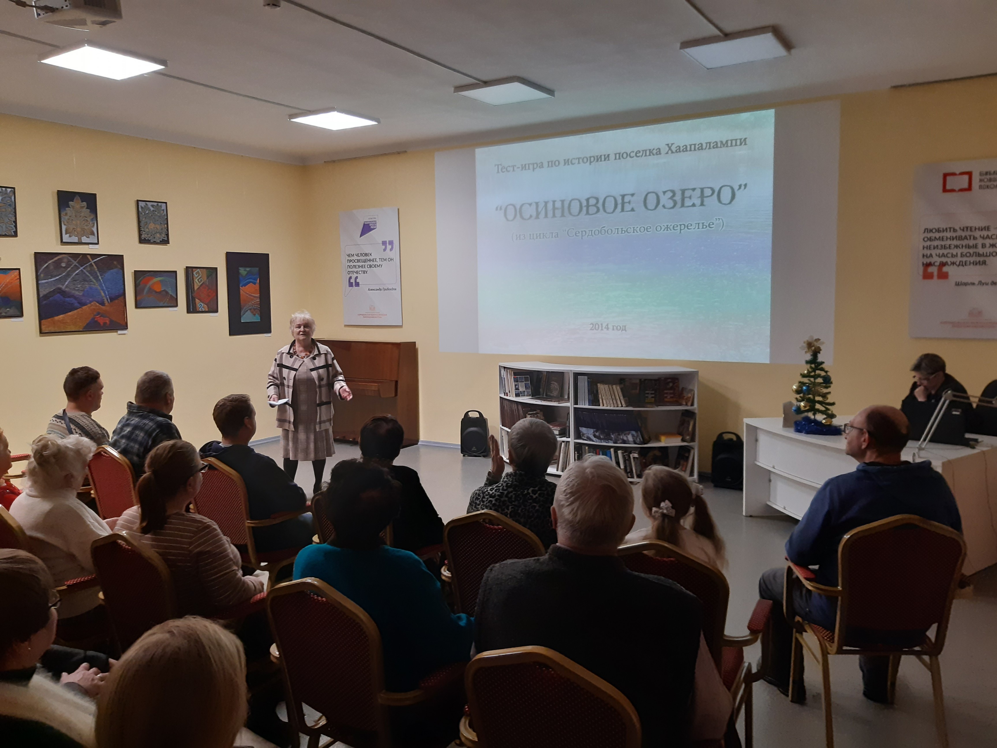 17 января в этнокультурном зале «Karjalan palaine» («Кусочек Карелии») Сортавальской районной библиотеки прошла тест-игра «Осиновое озеро» (история поселка Хаапалампи)