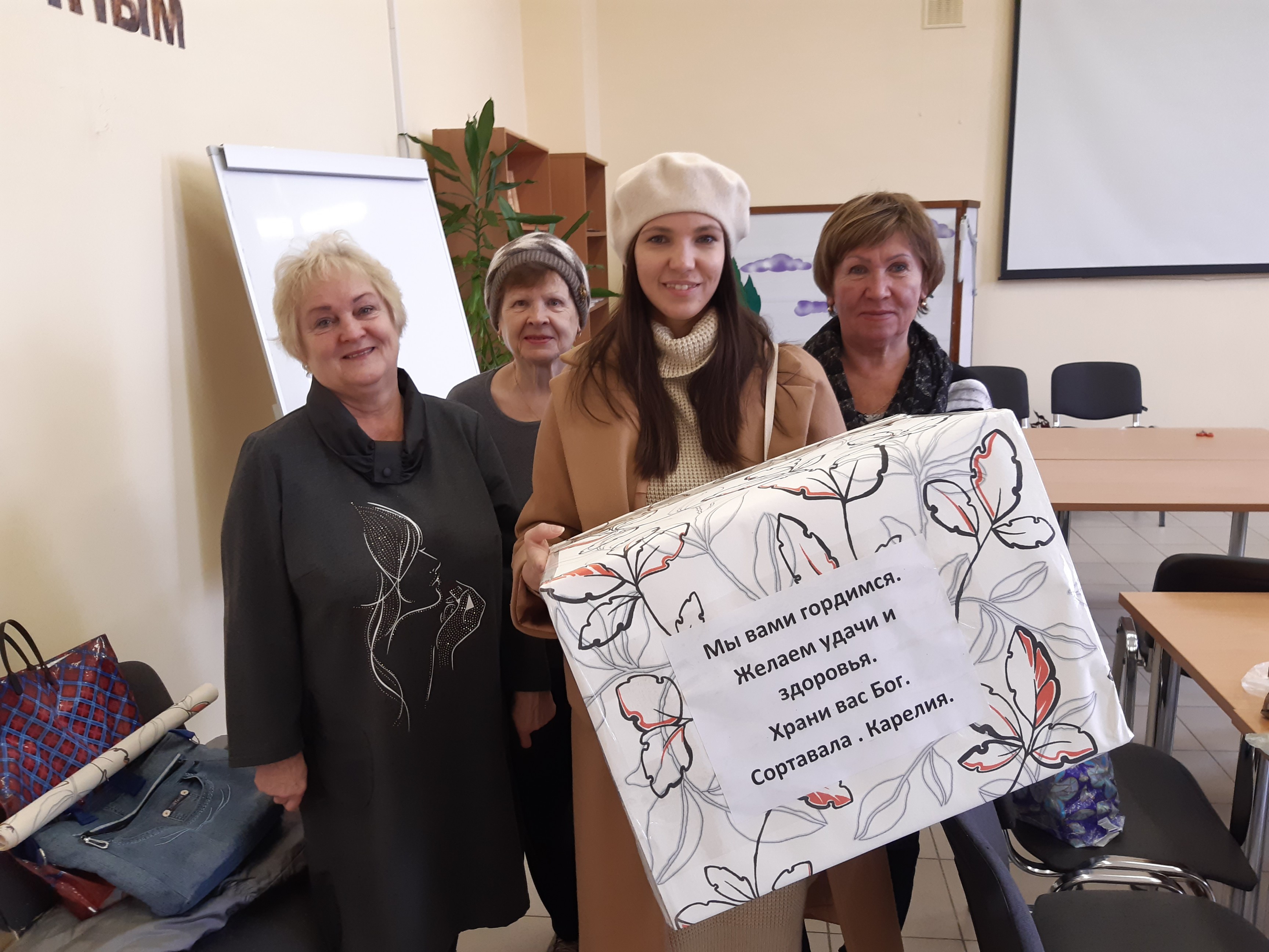 Общество карелов Сортавальского муниципального района совместно с представителями Совета женщин «Надежда», Совета ветеранов и специалистами Сортавальской районной библиотеки проводит встречи рукодельниц, на которых мастерицы вяжут теплые вещи для бойцов, участвующих в Специальной военной операции на территории Украины.