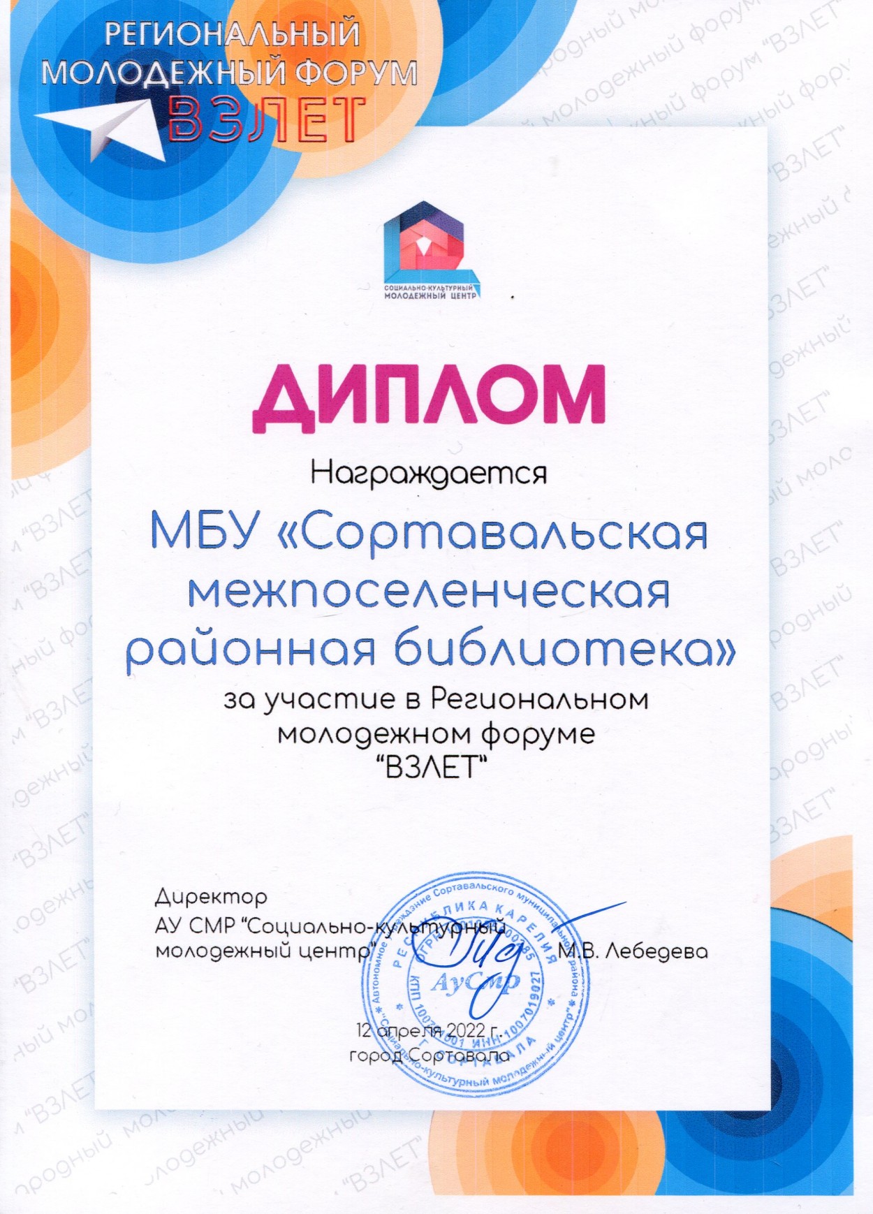 12 апреля в Социально-культурном молодёжном центе города Сортавала прошёл ежегодный молодёжный форум «Взлёт», одним из участников которого была Сортавальская районная библиотека.