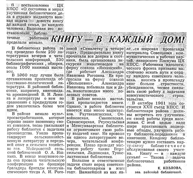 Главным событием 1960 года для читателей Сортавальской городской библиотеки
