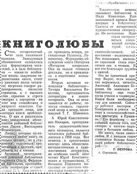 Ссылка на статью Книголюбы //Красное знамя - 1964 - 26 января