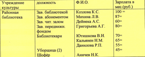 В соответствии с приказом Министерства культуры от 5 сентября 1965 года № 318 установить с 1 апреля 1965 года зарплату работникам культуры в следующих размерах: