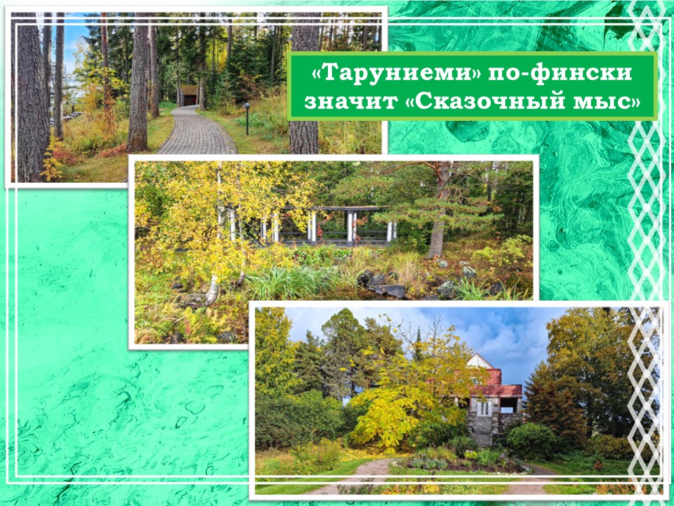 Таруниеми с его извилистыми берегами, светлой водой заливов и серебряным блеском между островами. Эти несравненные красоты настолько очаровывают, что никогда не могут исчезнуть из памяти.»