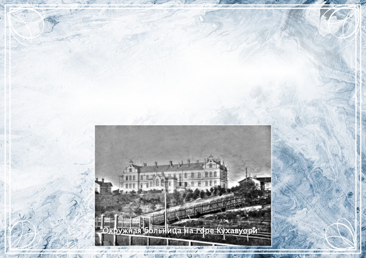 На момент появления молодого прогрессивного доктора в городе действовала окружная больница, расположенная в деревянном здании 1894 года постройки. Но в 1898 году здание сгорело.