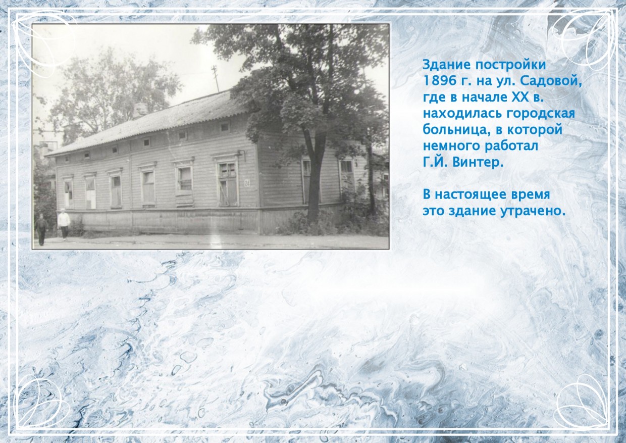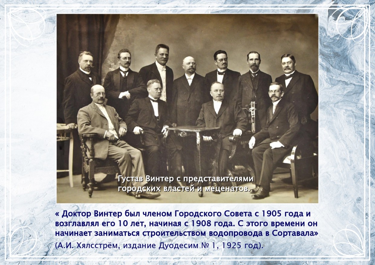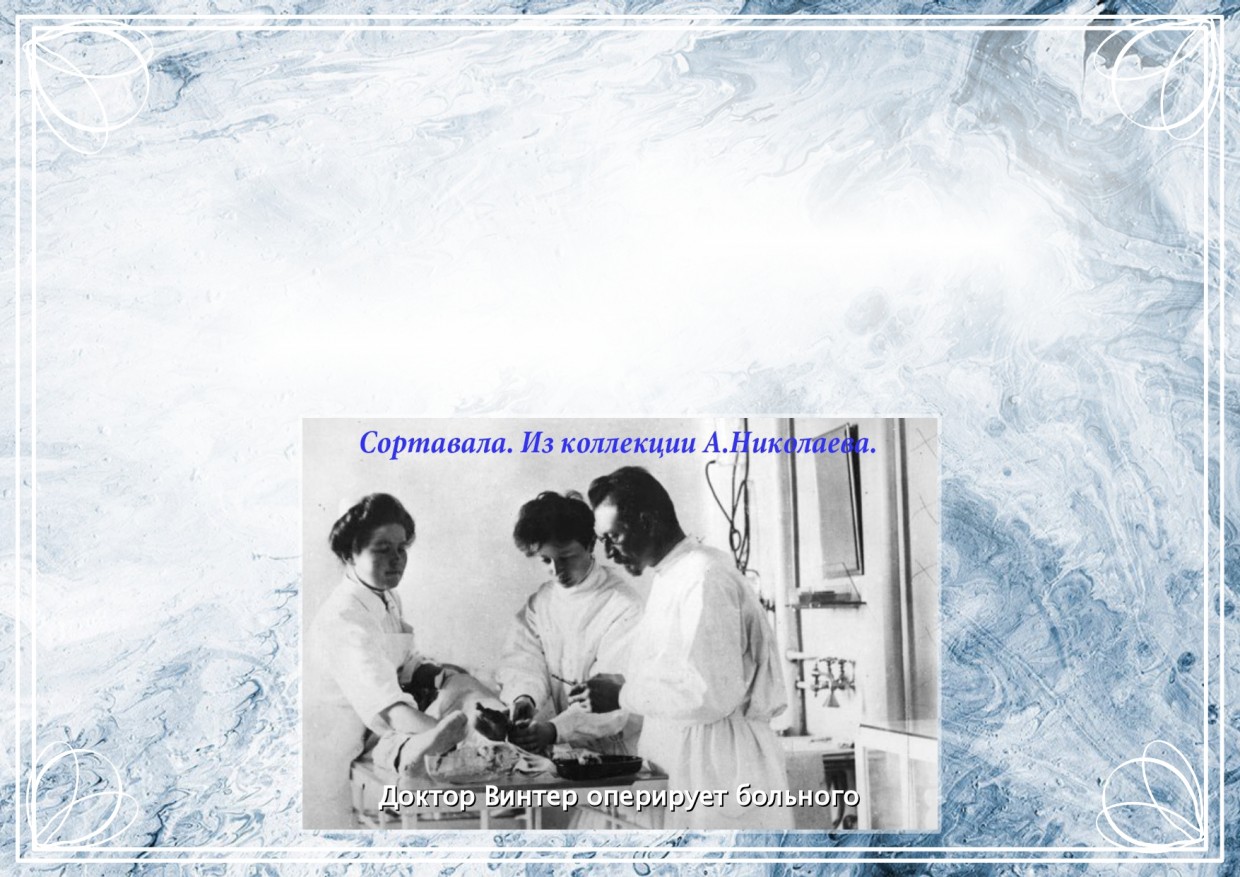 Густав Винтер некоторое время подрабатывал врачом в Сортавальской городской (муниципальной) больнице, действовавшей с 1896 года.