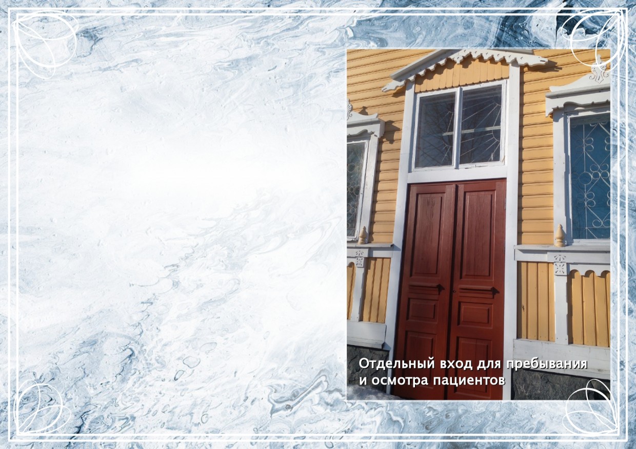 20 для больных венерических и 30 для общих. Здесь находились два операционных зала, четыре перевязочные и столько же ванных комнат. Палат было: десять общих и пять отдельных. Было семь комнат для медперсонала и множество хозяйственных помещений. Кроме основного здания имеется здания для проживания персонала и кухня со складом для продуктов, а также отдельная сауна и прачечная.