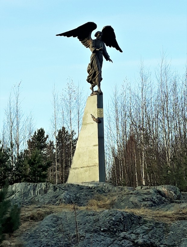 Скульптура установлена на горе Кухавуори на постаменте 2 м 80 см . Фигура ангела хранителя ростом 2 метра 40 см отлита из бронзы.