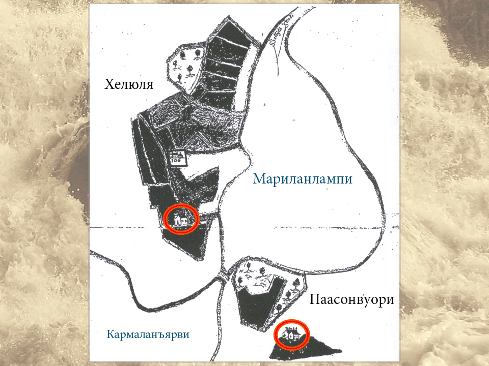 На другой стороне современного моста, недалеко от гор Паасо и Гороховой, в 1642 году шведы поставили первую лютеранскую церковь на сортавальской земле. Простояла она здесь недолго. В 1657 году во время очередной русско-шведской войны её сожгли русские солдаты.