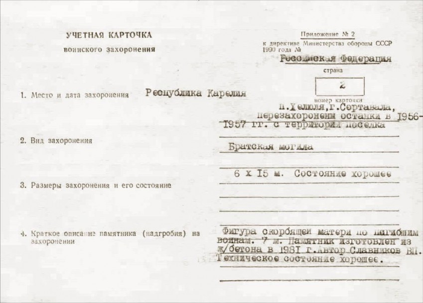 Братская могила в поселке Хелюля.
