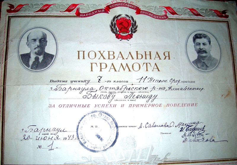 В 6 классе Леонид пытался сбежать на фронт, громить фашистов. 20 июня 1943 года Лёня с Похвальной грамотой окончил 7 класс и решил осуществить свою мечту - стать лётчиком.