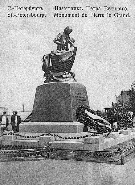 В 1907 году на выставке в Париже государя Николая II заинтересовали два макета памятников, выполненных из гипса. Их автором был Леопольд Бернштам. Один макет носил название «Пётр, спасающий рыбаков близ Лахты», другой – «Пётр, обучающийся к корабельному мастерству в Саардаме». По велению Николая II в 1910 году с макетов отлили бронзовые памятники и установили на Адмиралтейской набережной.