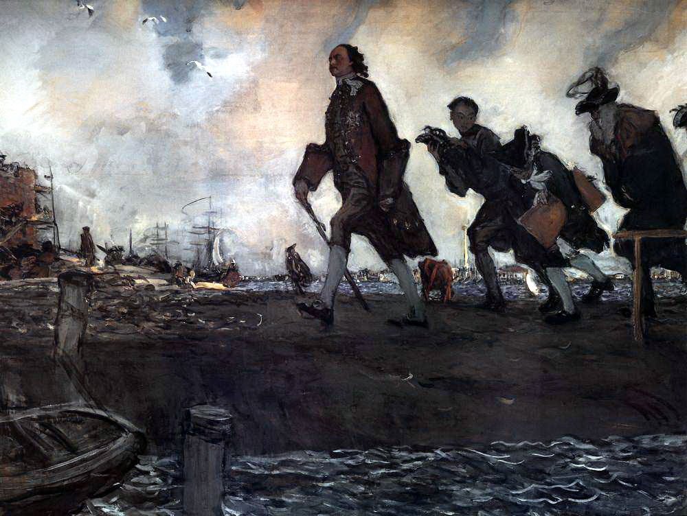 «…Скоро берега Невы покрылись невзрачными деревянными домиками, на которые русским – и боярам, и простолюдинам – было тошно смотреть, не то что жить в них. Но Пётр не мог налюбоваться новым городком. Гавань на Балтике! Рай! Парадиз!»