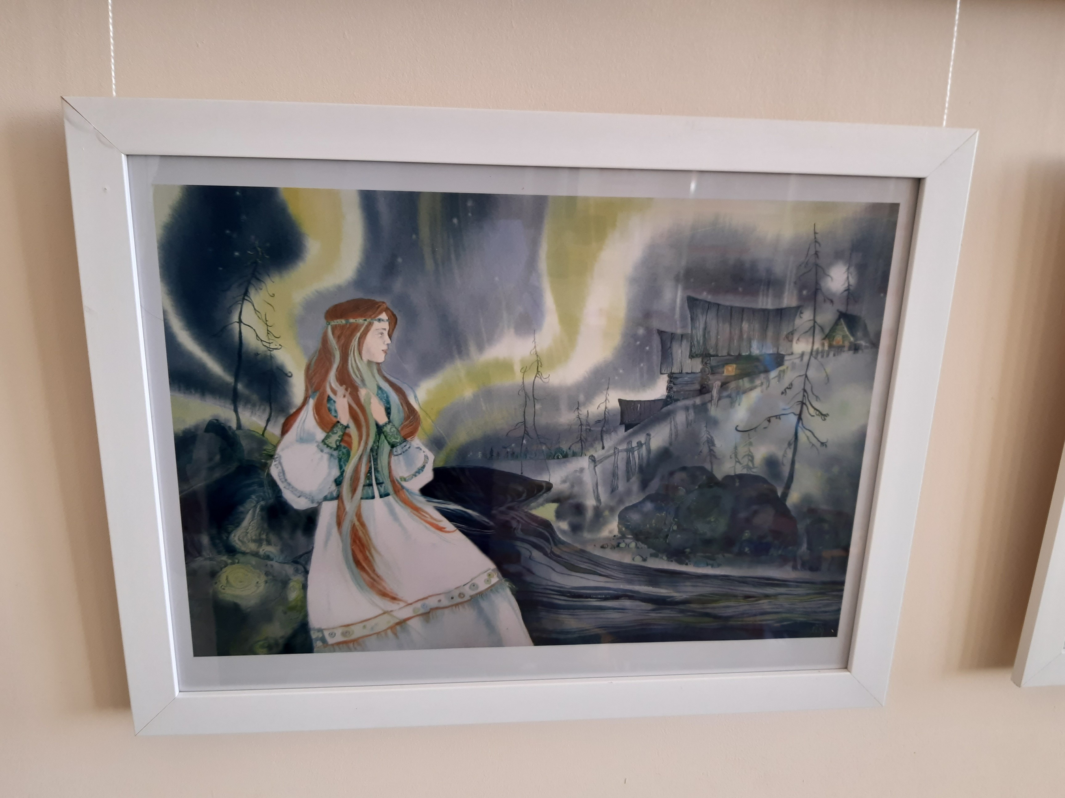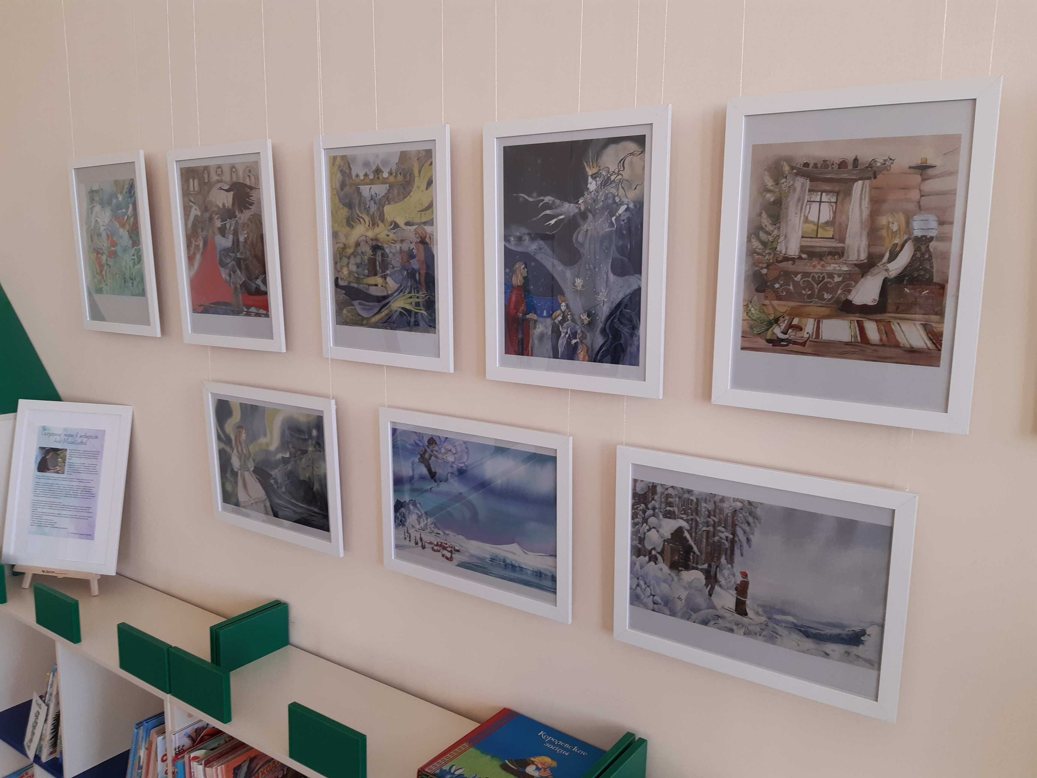 На выставке представлены иллюстрации к сказкам Э.Грига «Пер Понт», В.А. Моцарта «Волшебная флейта» и к сказке С.Г.Писахова «Северно сияние».